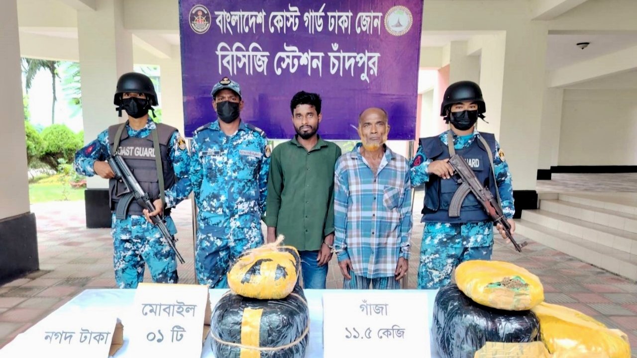 চাঁদপুরে সাড়ে ১১ কেজি গাঁজাসহ ২ মাদক ব্যবসায়ী আটক