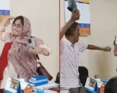 রাজশাহীতে চড়ের জবাবে শিক্ষিকাকে বিএনপি নেতার জুতাপেটা