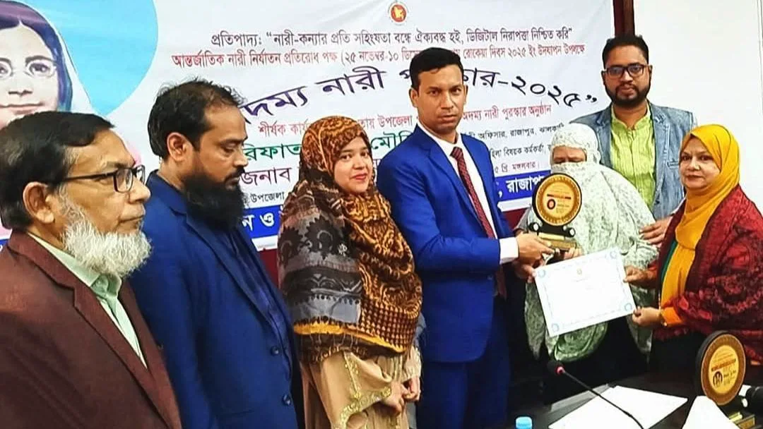 “নারী-কন্যার প্রতি সহিংসতা বন্ধ্যে ঐক্যবদ্ধ হই, ডিজিটাল নিশ্চিত করি” এই প্রতিপাদ্য বিষয় নিয়ে আন্তর্জাতিক নারী নির্যাতন প্রতিরোধ পক্ষ ও বেগম রোকেয়া দিবস ২০২৫ উদযাপন অনুষ্ঠানে ঝালকাঠির রাজাপুর উপজেলা পর্যায়ে সফল জননী পুরস্কার পেলেন আনোয়ারা খানম। তিনি ঢাকা রিপোর্টার্স ইউনিটির সভাপতি ও নয়া দিগন্ত পত্রিকার সিটি এডিটর আবু সালেহ আকন এবং বাংলা টিভি ঝালকাঠি জেলা প্রতিনিধি আবু সায়েম আকনের মাতা।