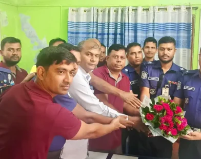 হাইমচর থানার নতুন ওসি হলেন শাহ আলম: ফুলেল শুভেচ্ছা জানালো সহকর্মীরা