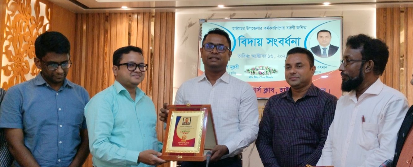 হাইমচরে দু’জন কর্মকর্তার বদলিজনিত বিদায় সংবর্ধনা।