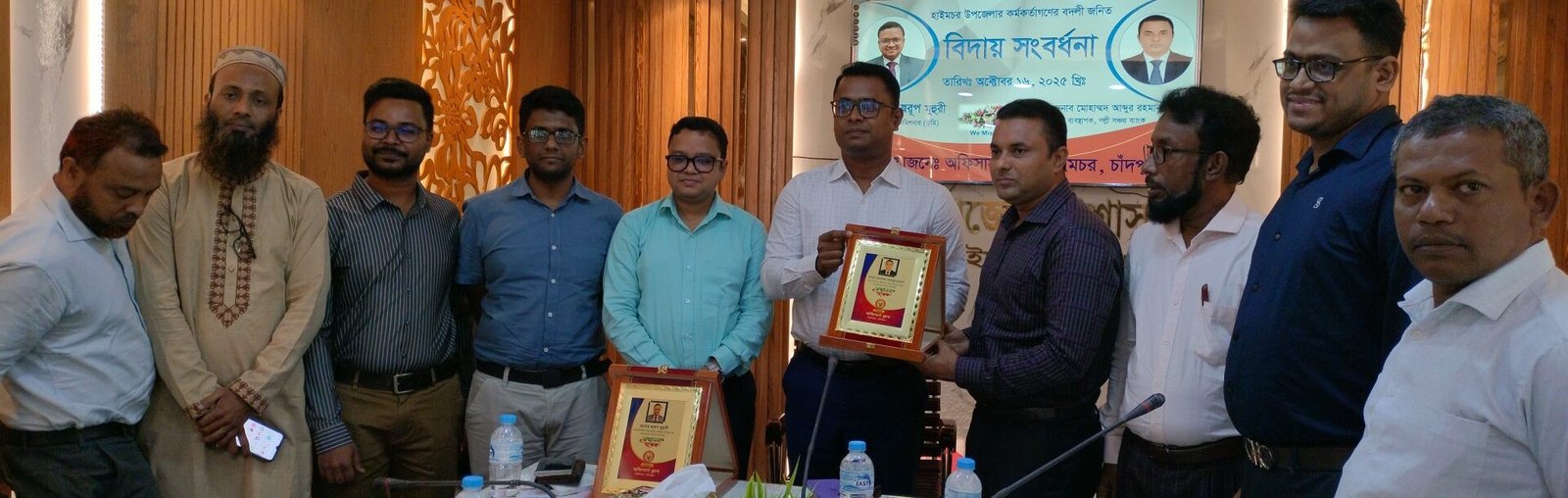 হাইমচরে দু’জন কর্মকর্তার বদলিজনিত বিদায় সংবর্ধনা।
