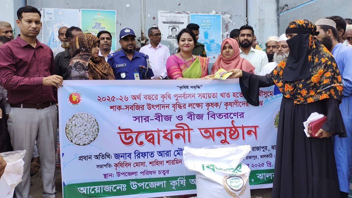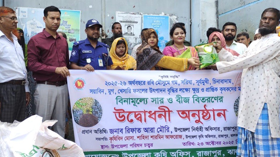 ডেক্স রিপোর্ট: ঝালকাঠির রাজাপুর উপজেলায় ২০২৫-২৬ অর্থবছরের রবি মৌসুমে কৃষি প্রণোদনা কর্মসূচির আওতায় ক্ষুদ্র ও প্রান্তিক কৃষকদের মাঝে বিনামূল্যে বীজ ও সার বিতরণের উদ্বোধন করা হয়েছে। শীতকালীন সবজি ও অন্যান্য রবি ফসল উৎপাদন বৃদ্ধি এবং কৃষকদের উৎসাহিত করতে এই সহায়তা দেওয়া হচ্ছে।