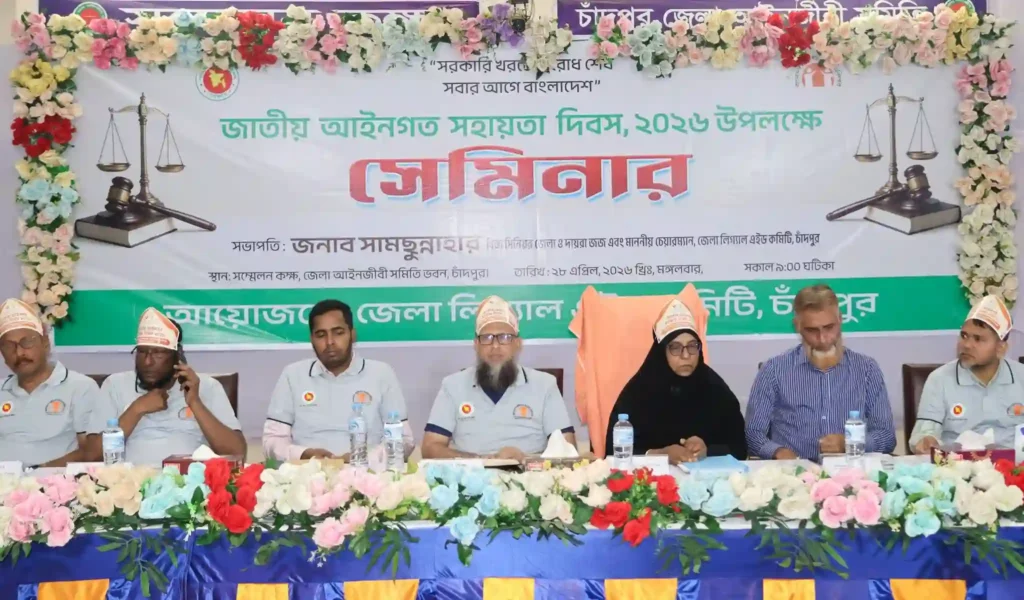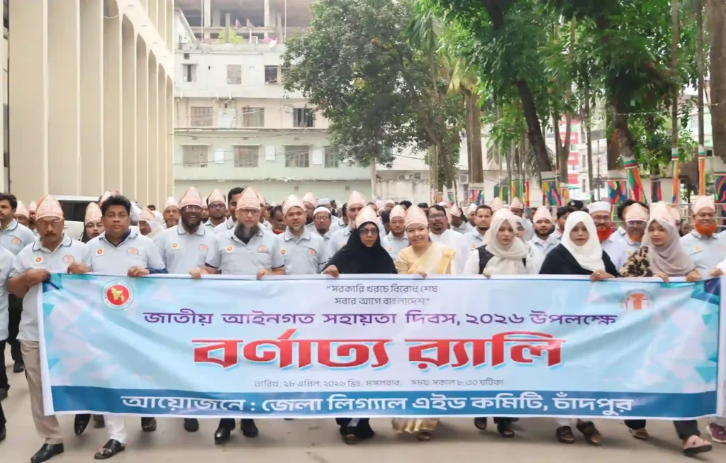 ‘বিনা মূল্যে আইনি সহায়তা, স্মার্ট বাংলাদেশের অঙ্গীকার’—এই প্রতিপাদ্যকে সামনে রেখে চাঁদপুরে যথাযোগ্য মর্যাদায় জাতীয় আইনগত সহায়তা দিবস-২০২৬ পালিত হয়েছে। জেলা লিগ্যাল এইড কমিটির আয়োজনে র্যালি, আলোচনা সভা ও পুরস্কার বিতরণীর মধ্য দিয়ে দিবসটি উদযাপন করা হয়।
