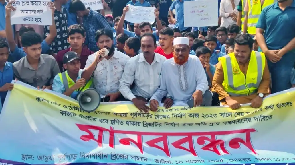 বক্তারা জানান, ধোপার নদীর ওপর এই ব্রিজের নির্মাণ কাজ ২০২১-২০২২ অর্থবছরে শুরু হয়েছিল এবং ২০২৩ সালে শেষ হওয়ার কথা ছিল। কিন্তু আজও ব্রিজের মাত্র ২০ শতাংশ কাজ সম্পন্ন হয়েছে। ঠিকাদার কাজ ফেলে লাপাত্তা হয়ে যাওয়ায় নির্মাণ কাজ বন্ধ হয়ে আছে।